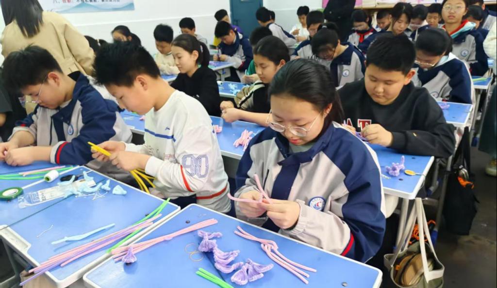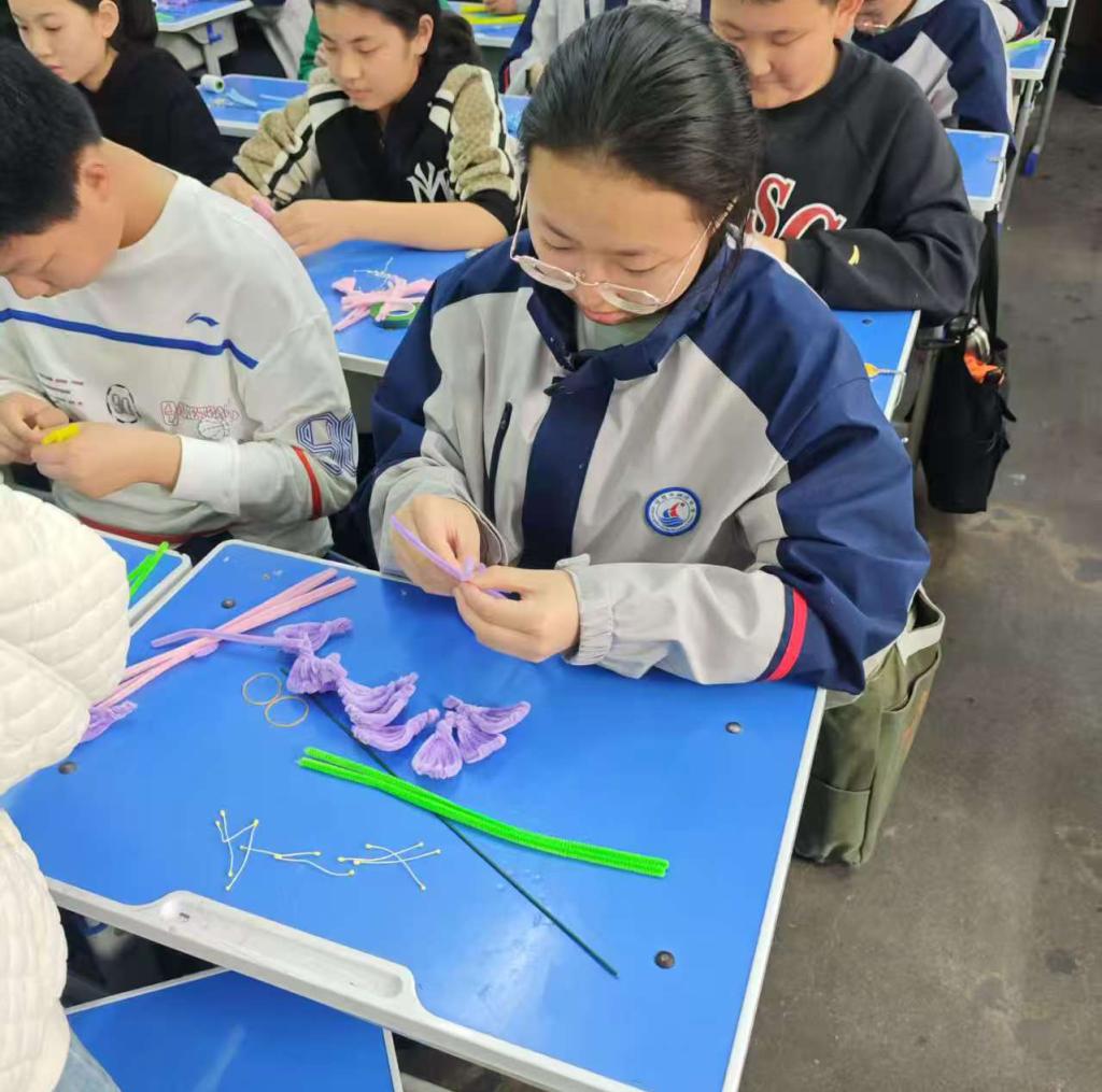 在校园生活中,创意与手工活动能够激发学生们的创造力和动手能力,丰富学生们的课余生活,为了让同学们在紧张的学习环境中放松心情,千千结艺社于2025年3月27日16点—18点在浉河中学面向七年级十九班全体同学举办了一场主题为“指尖生花,扭出创意”扭扭棒花卉制作活动。与同学们一起扭出创意,让扭扭棒在指尖绽放花样。