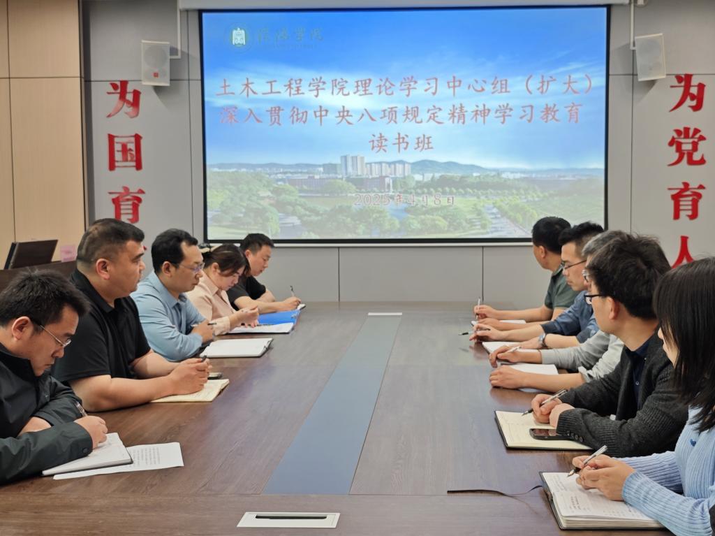 为推动深入贯彻中央八项规定精神学习教育有序有效开展,按照党中央要求和学校党委有关安排,4月8日下午,土木工程学院党总支理论学习中心组在理工楼112会议室举办深入贯彻中央八项规定精神学习教育读书班,学院党总支书记徐远东、党总支委员、各支部书记及各教研室主任参加了读书班活动。会议由徐远东主持。