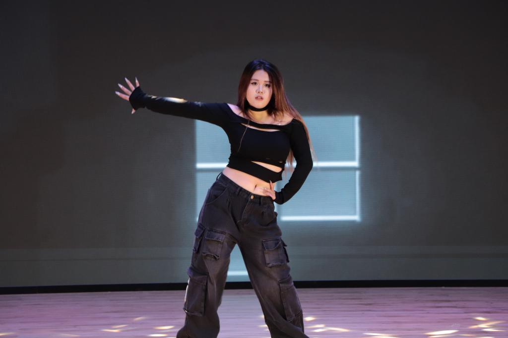 舞蹈《Up》的表演者孙婧姝以潇洒不羁的神态惊艳登场,拽步生风的出场方式瞬间点燃舞台。随着音乐鼓点的响起,她的每个动作都精准契合节奏——手臂摆动与音乐完美同步,身体起伏灵动自然,发力点标准到位,展现出她卓越的肢体控制力与爆发力。在充满力量感的舞姿中,她始终保持着自信的眼神,将活力四射的表演推向高潮。