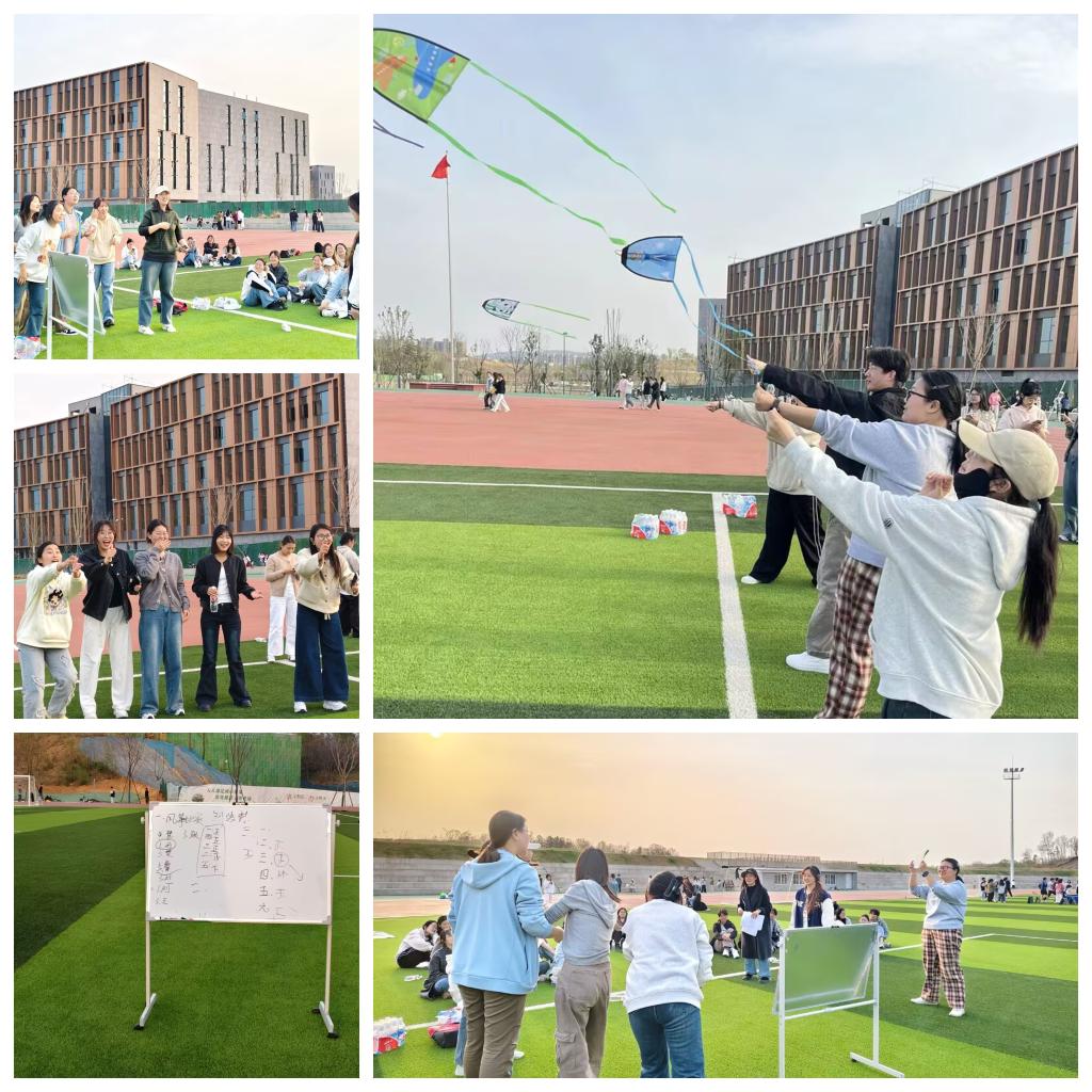 在“风筝竞技乐翻天”环节,同学们以小组为单位放飞风筝,五颜六色的风筝在空中竞相飞舞,不仅加强了同学们实践操作的乐趣,也让他们在自然中放松身心,感受自然的魅力;“英语猜诗大挑战”则结合外语专业特色,通过抢答经典英文诗歌题目,提升了同学们的英语学习能力与自信。