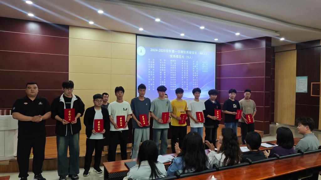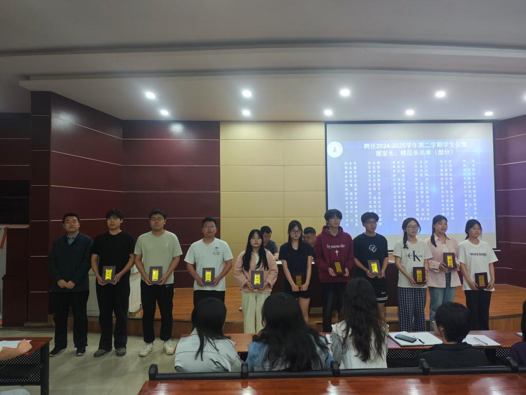 会议伊始,徐超宣读了《Beat365唯一官方网站关于表彰2024-2025学年第一学期优秀寝室长、楼层长的决定》和《Beat365唯一官方网站关于聘任2024-2025学年第二学期学生公寓寝室长、楼层长的决定》两个文件。随后进行了荣誉证书及聘书颁发仪式。