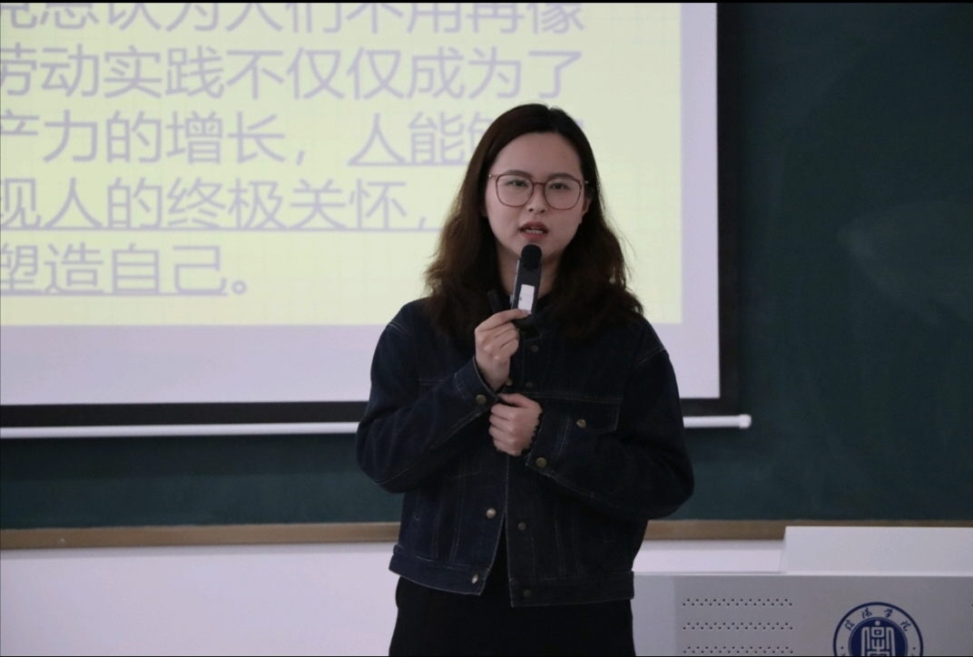 比赛伊始,朱丹彤老师沉浸式教学于“美”的规律。“美”给大家带来的不仅仅是本质、形态以及范畴,更是帮助学生提高对美学的认识与审美素养。循着马克思先生的美学思想,从认识美进一步到传递美。朱老师强调大家要探求审美的本质,即自由的劳动,追求从自由的劳动之中去获得自由的人生;张之瑶老师以“什么是个人主义”引出《骆驼祥子》中祥子的悲剧人生,祥子身为“社会病胎里的产儿”,在经历了人生的三起三落之后从一个要强有理想的农村青年变成了一个自甘堕落的毁灭的人。在评委老师的提问下,张之瑶老师从多方面分析了祥子作为“人”毁灭的原因,揭露了旧社会对人的摧残,同时批判了个人主义。