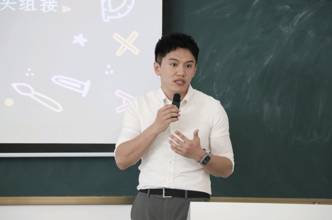 王斌老师以《现代汉语(二)》进行说课。他提出“以教师为主导、以学生为主体、以实践为主线”的创新教学理念,强调知识源于生活、用于生活。在《词类及其划分依据》的试讲环节,以可视化图片作为课程导入,随后抛出三个层层递进的问题,并且巧妙结合《现代汉语(一)》的知识点,帮助学生构建知识体系,加深对词类划分的理解;李阳老师积极探索《电视画面编辑》课程的革新之路,坚持以学生为中心,构建起从理论到实践的创新教学模式。值得一提的是,李阳老师选用红色经典视频案例,将思政元素巧妙融入教学内容。在传授专业知识的同时,培养学生的责任感与价值观,厚植爱国情怀。