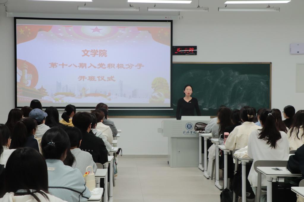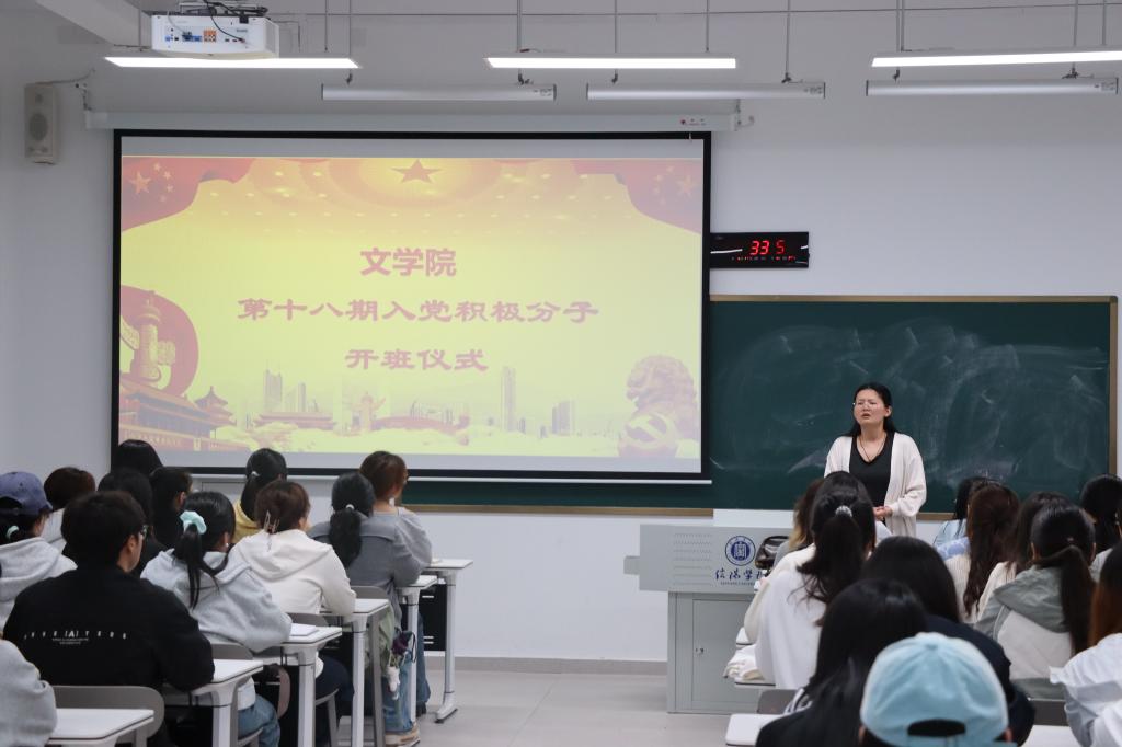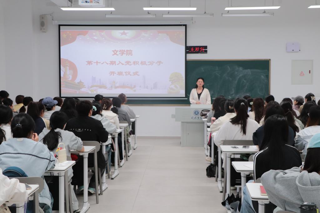 为进一步提高入党积极分子政治理论素养,确保高质量发展,2025年4月11日下午,文学院在教一楼203教室举行文学院第十八期入党积极分子培训班开班典礼。党总支书记李赟、学工干事何军华、辅导员湛世霞、刘娟和文学院第十八期入党积极分子参加本次活动,本次活动由湛世霞主持。