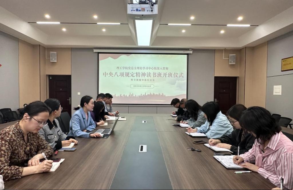 在读书班开班仪式上,组织员王雨茜宣读了《理工学院党总支深入贯彻中央八项规定精神读书班活动方案》。随后,党总支书记赵佳作专题辅导报告,她从加强作风建设、深入贯彻中央八项规定精神的重要意义等方面展开阐述,详细讲解了中央八项规定及其精神内涵。结合学院工作实际,分析了中央八项规定精神对抓好干部作风、教师教风和学生学风的重要作用和意义。
