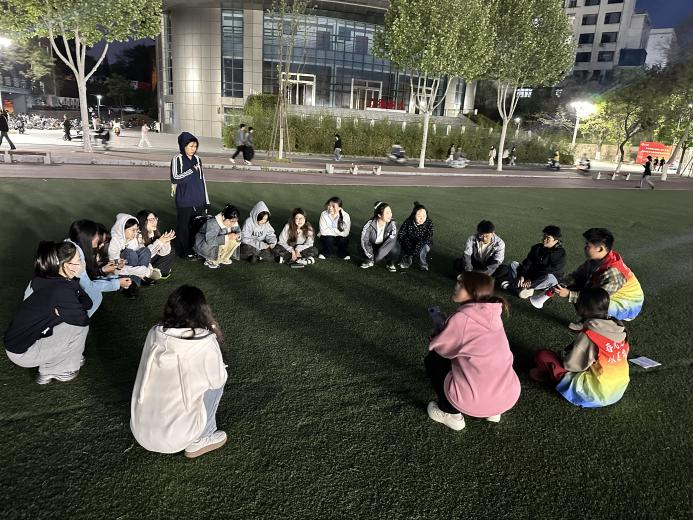 4月12日晚,美术与设计学院在学校西操场成功举办了“团辅相助,心暖情长”心理团辅活动。本次活动以趣味游戏为载体,融合心理健康教育与团队协作,将艺术疗愈理念融入心理活动设计。活动吸引了2022级、2023级和2024级70余名学生热情参与,现场气氛热烈。