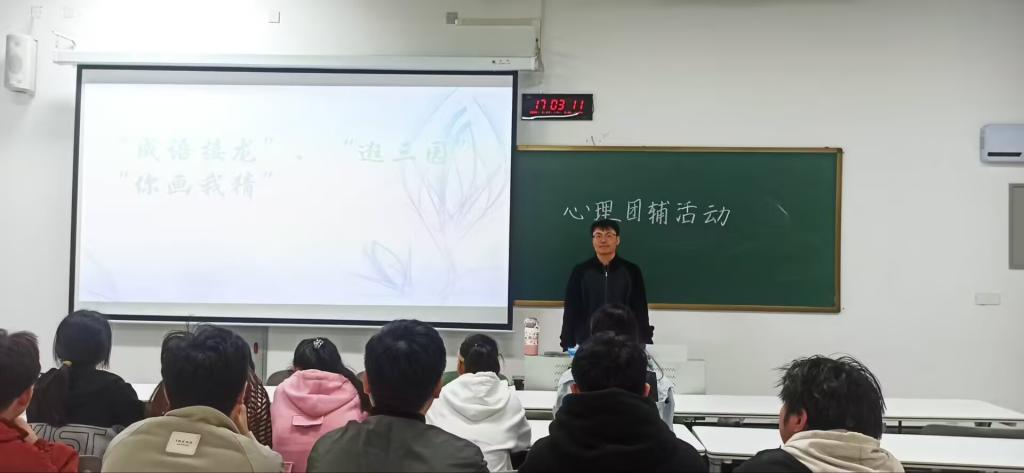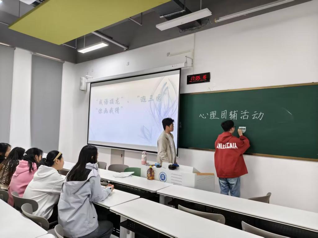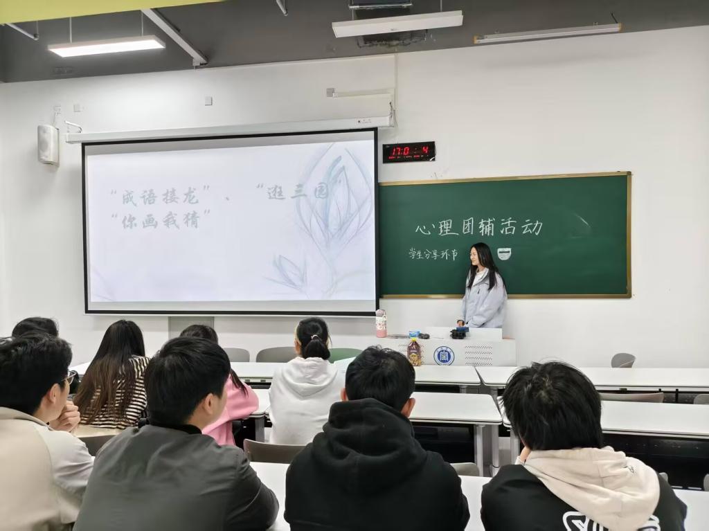 活动开始,辅导员老师们从开展心理团体辅导的目的、常见心理问题与应对、团体实践游戏规则等三个方面进行了详细讲解。活动现场,“成语接龙”“逛三园”“你画我猜”游戏依次登场,同学们的欢声笑语此起彼伏,彼此之间的距离也在无形中逐渐拉近。