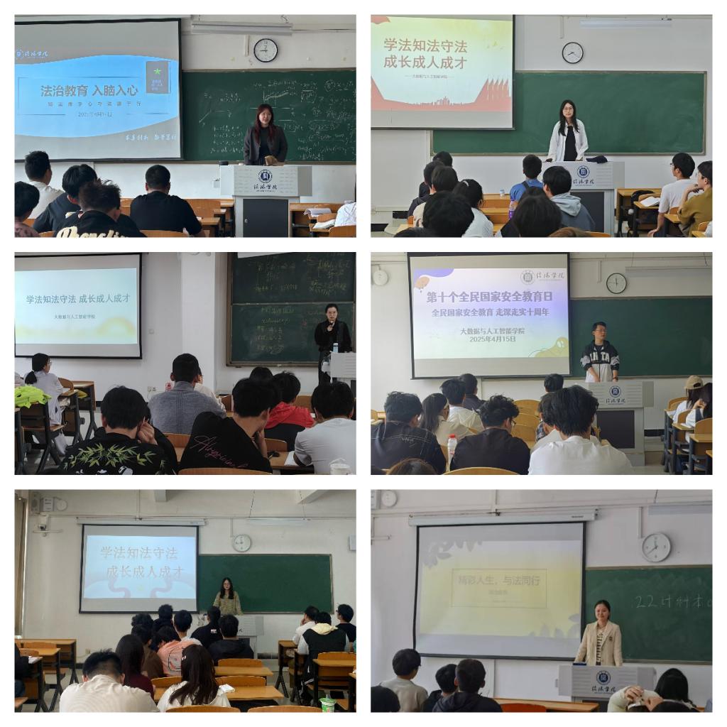 为深入贯彻落实党的二十大精神,全面推进依法治校,增强学生法治观念,营造尊法、学法、守法、用法的校园氛围,4月14至18日,大数据与人工智能学院全体辅导员组织各班级学生召开“学法知法守法,成长成人成才”法治宣传周主题教育班会。本次班会旨在加强法治教育,普及法律知识,引导青年学子系好人生“法治纽扣”。