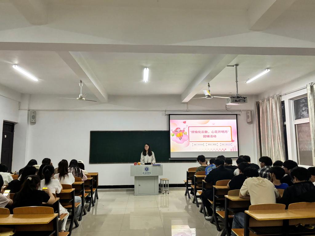 为进一步增强学生心理韧性,提升学生心理健康素养,4月16日,大数据与人工智能学院辅导员夏逗逗在人文楼南楼210教室组织开展了一场以“烦恼化云散,心花开明月”为主题的心理健康团辅活动。