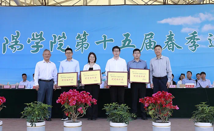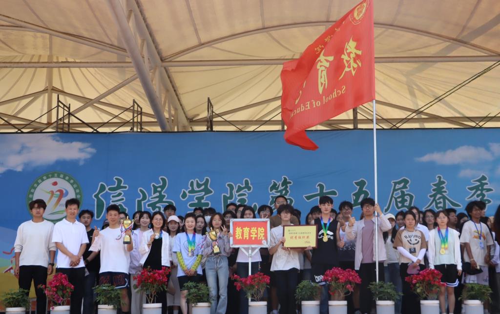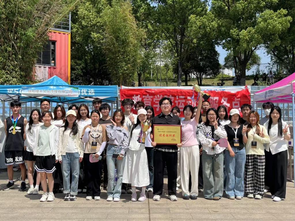 最后,经历了激烈的竞争与奋斗拼搏,终于迎来了运动会的闭幕式,教育学院的师生运动员在本次运动会中取得了骄人的成绩,其中王梦涵同学、马婷婷同学、张栋良同学、程书林同学分别斩获女子三级跳远、女子铅球、男子三级跳远和女子跳高冠军;祝静怡同学和郭欣源同学分别荣获女子200米、女子400米亚军;宋梦妍同学和李富强同学勇夺男、女子1500米季军;学生组女子4×400接力赛郭欣源、谢赛金、王殊玉和李思语组成的团队勇夺冠军。樊雪冰老师荣获男子跳远冠军,靖淑针老师荣获女子200米亚军,唐启正老师荣获男子100米季军,郭松老师、黄玉老师分别荣获男子800米第四名和女子800米亚军,教工男、女子4×100接力赛双双斩获亚军。凭借在运动会中的突出表现,我院荣获学生组团体总分第二名,教工组团体总分第二名,被学校授予优秀组织奖。一项项荣誉的取得汇聚了全院师生的汗水,也展现了教育学院师生争先创优、奋楫前行的精神风貌。