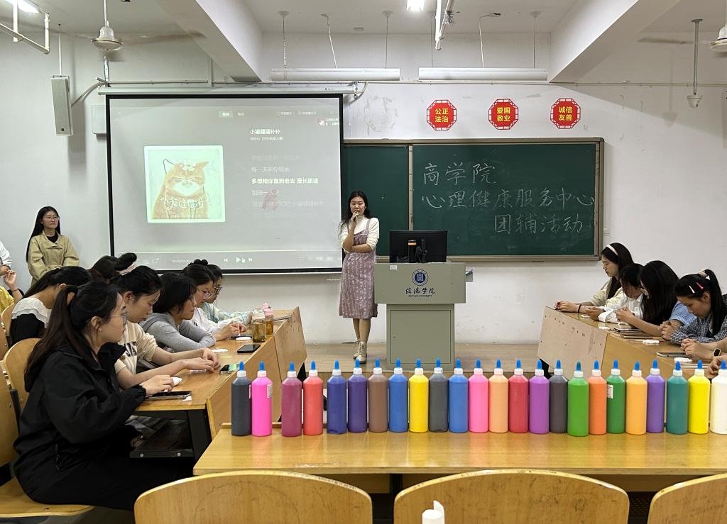 为助力学生深入洞察自身心理状态,掌握应对负面情绪的有效方法,提升心理调适能力,商学院精心筹备并举办以“心向阳光,携手同行”为主题的心理团辅系列活动。4月22日晚,首场活动“彩绘心灵,‘愈’见自己”在综合楼301教室举行。活动以DIY石膏娃娃绘制为载体,为同学们打造了一场心灵疗愈之旅。商学院二级心理站站长姚梦娜老师现场指导。