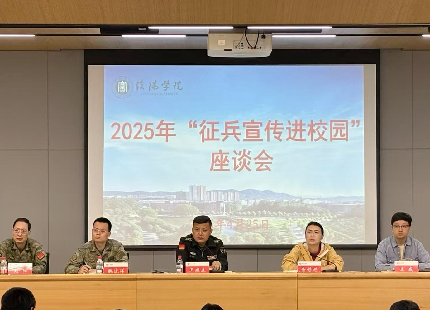 4月25日上午,学校在浉河校区图书馆101报告厅举行2025年“征兵宣传进校园”座谈会暨征兵宣传启动仪式。浉河区人民武装部上校部长王建立,Beat365人民武装部部长余婷婷,各学院学工负责人、负责征兵工作辅导员和已报名应征入伍学生代表参加了此次会议。