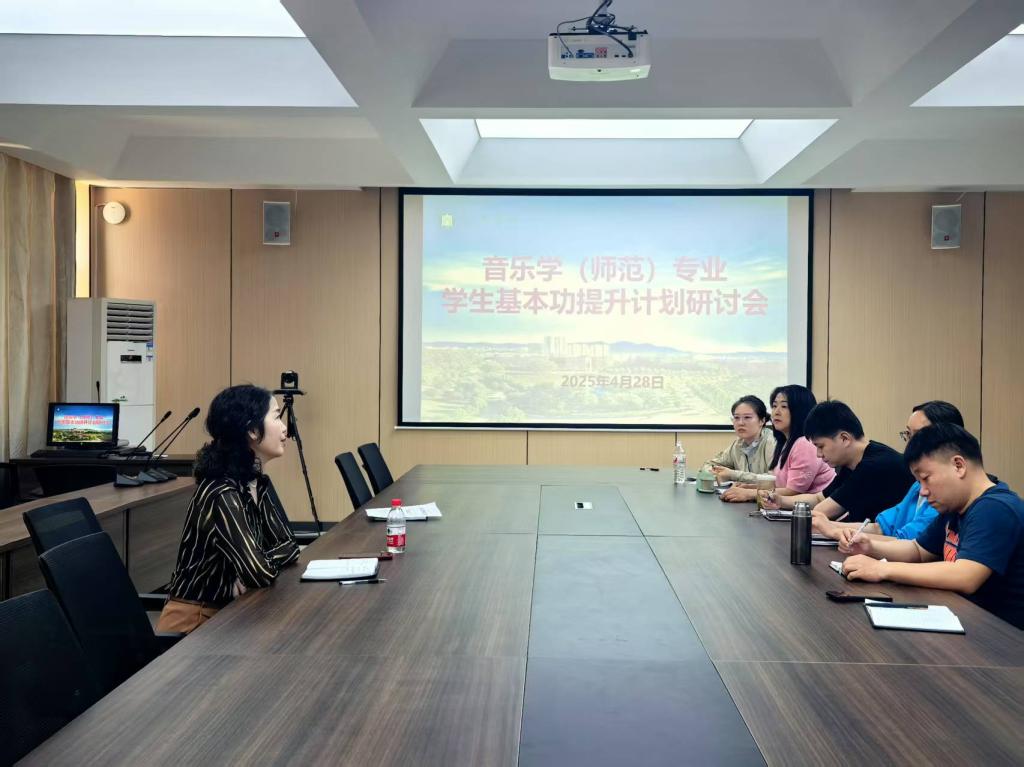 4月28日,音乐学院于艺术楼215会议室召开师范专业基本功提升研讨会暨期中教学工作会。音乐学专业负责人、教学办人员、全体教研室主任、骨干教师参会。副院长杨辉出席会议并讲话。