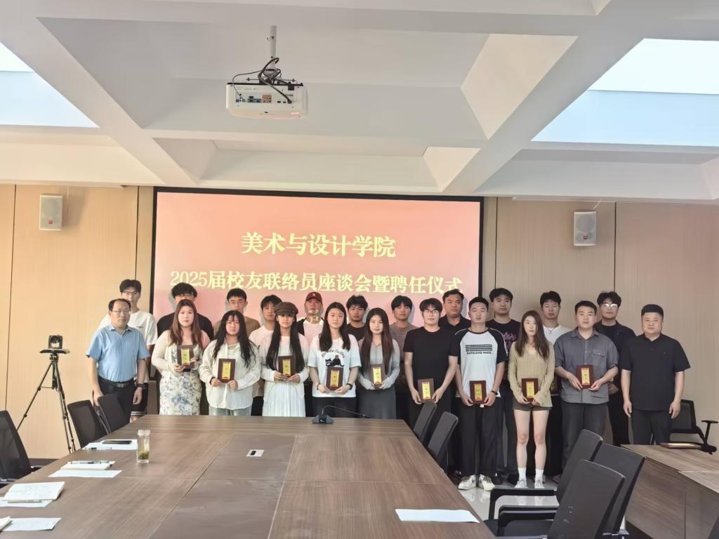 会上,秦金峰宣读了《美术与设计学院关于聘任2025届校友联络员的决定》,郑山峰、王伟为2025届校友联络员颁发聘书并合影留念。