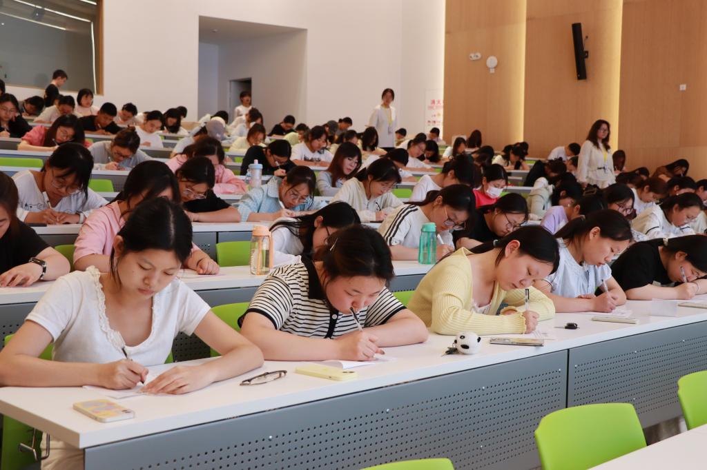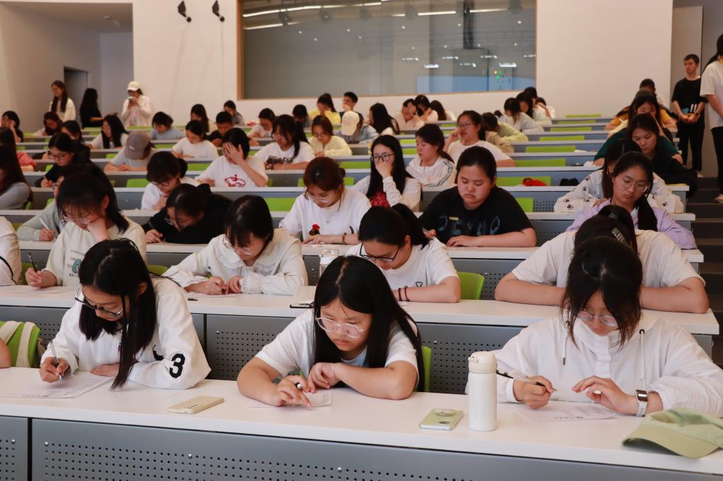 参赛选手们迅速进入状态,个个凝神屏气,全神贯注地聆听题目,大脑飞速运转,仔细斟酌每一个字的写法,随后在答题纸上郑重落笔,全场寂静,只余笔尖摩挲纸面的沙沙声响。