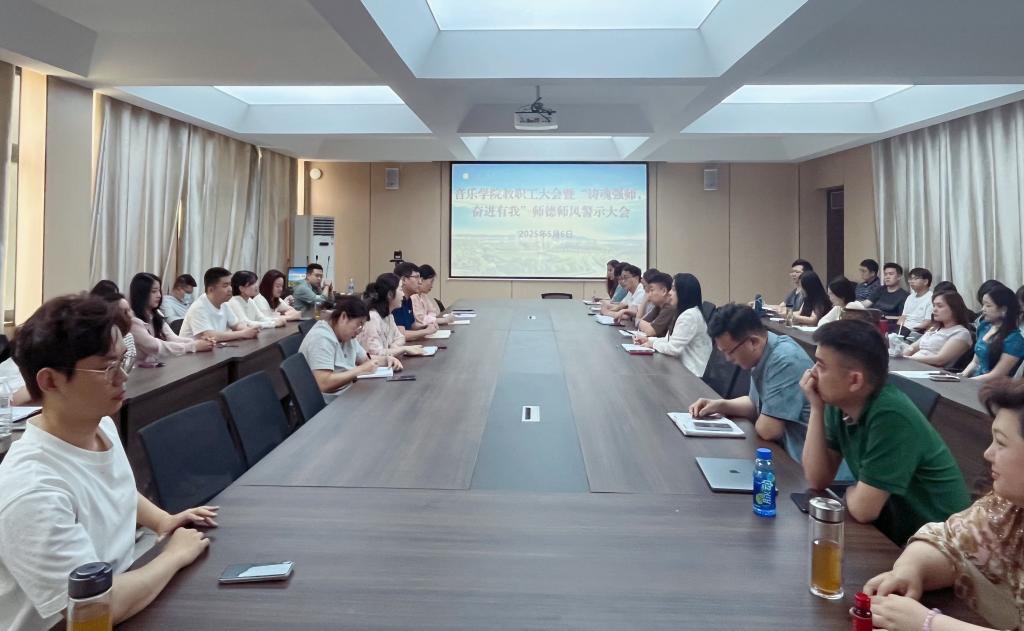 5月6日下午,音乐学院在艺术楼215会议室召开全体教职工大会暨“铸魂强师,奋进有我”师德师风警示大会。党总支书记郝昊、副院长杨辉以及全体教职工参加了会议。郝昊主持了会议。