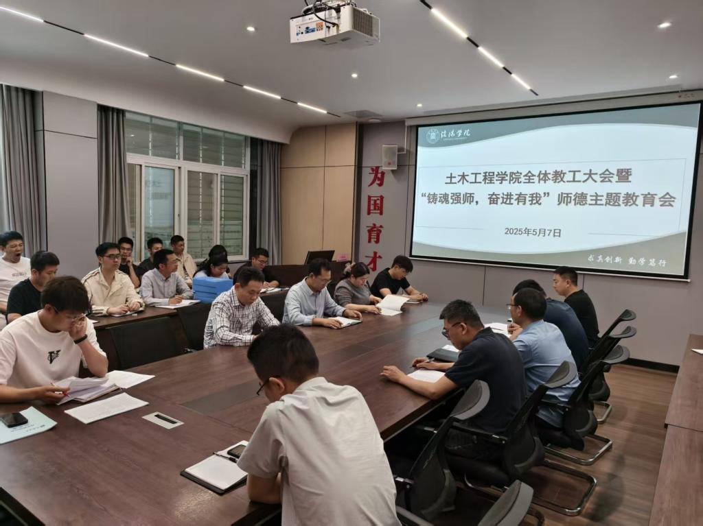 5月7日下午,土木工程学院在理工楼112会议室召开全体教工大会暨“铸魂强师,奋进有我”师德主题教育会。学院名誉院长鲍鹏、教学副院长杨子泉及全体教工参加了会议。会议由杨子泉主持。