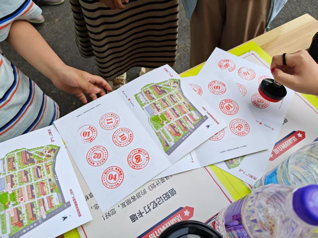 木机厂文创产业园内,师生团队的服务更具实践特色。他们不仅承担文创市集的导览工作,更展出了自主设计的作品。十几名学生走进信阳市木机厂文创产业园,以“创意NPC”身份参与木机厂文创园实景剧本杀,沉浸式体验《怀旧木机》线路。通过艺术设计、互动表演、场景营造等多元形式,为市民游客打造了一场沉浸式文化盛宴,展现了高校学子服务地方文旅发展的创新活力。