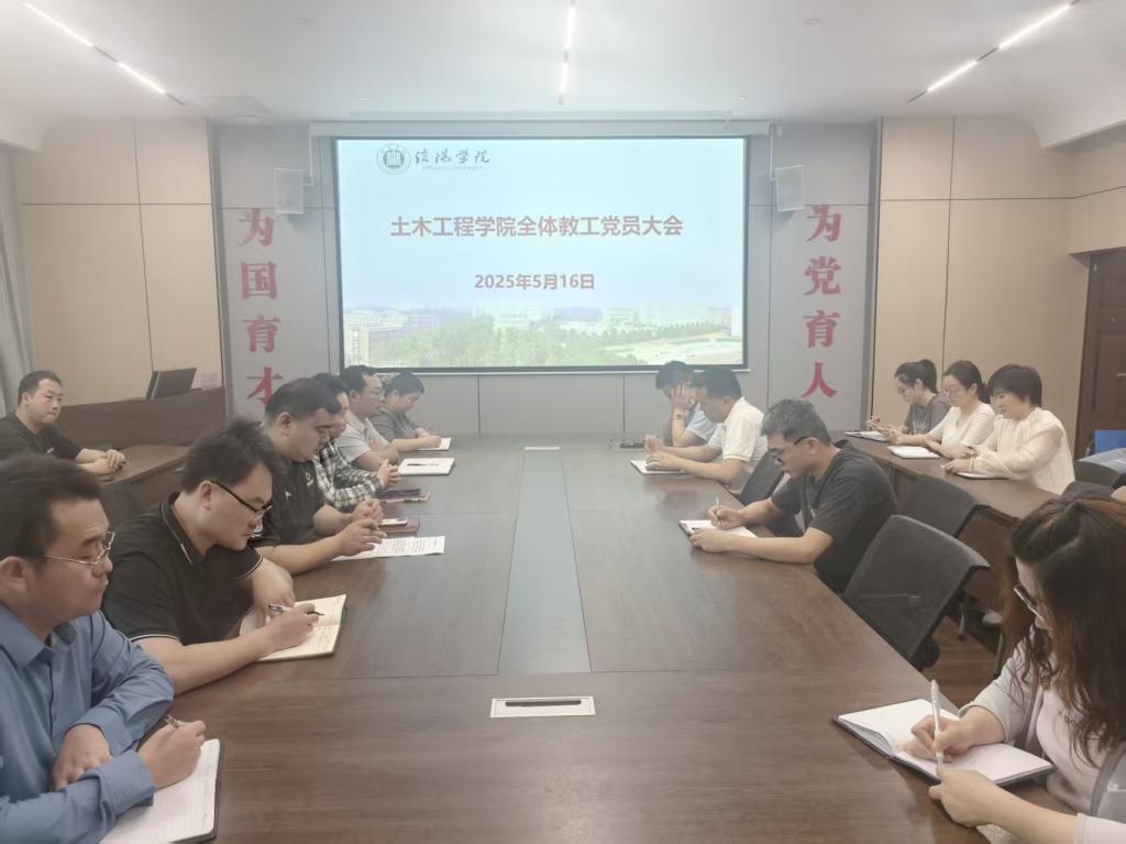5月16日上午,土木工程学院在理工楼112会议室召开全体教工党员大会,学院党总支书记徐远东、党总支委员、各支部书记及全体教工党员参加了会议。会议由徐远东主持。