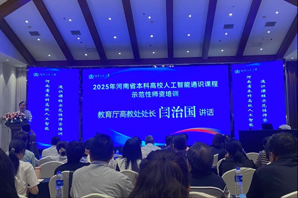 为加速推进教育数字化转型进程,深化人工智能通识课程体系建设,全面提升教师人工智能素养与教学实践能力,5月17日至18日,大数据与人工智能学院人工智能教研室张冬松博士与赵琳老师前往新乡,参与河南省本科高校人工智能通识课程示范性师资培训会。培训期间,两位老师与省内多所高校教师齐聚一堂,共同探索人工智能通识教育的创新发展路径。