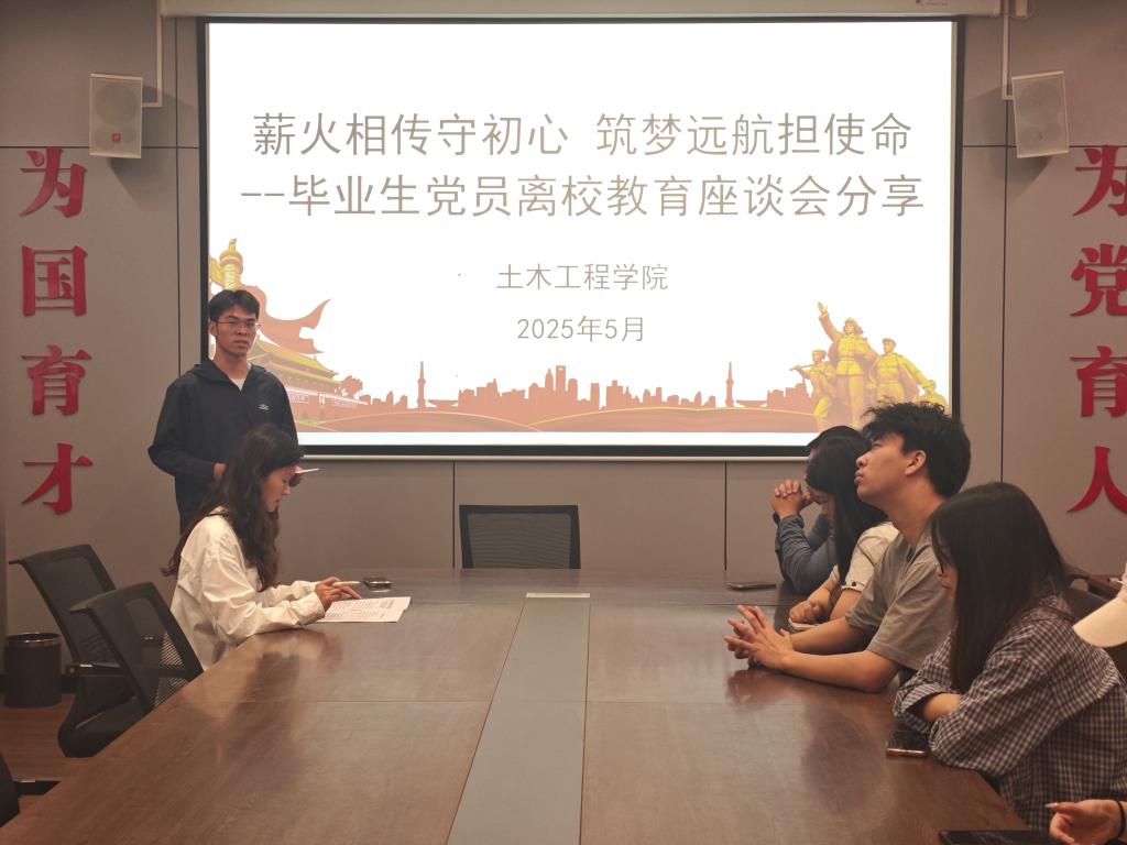 此次毕业生党员离校教育活动,通过沉浸式教育实现党性锤炼与情感共鸣双融合,为青春远航注入红色动能,为毕业生党员上好了离校前的“最后一课”。土木工程学院党总支寄语毕业生党员以“种子精神”扎根祖国大地,让党徽在平凡岗位闪耀光芒。毕业生党员们纷纷表示,将牢记党员身份,传承红色基因,践行党的宗旨,在各自岗位上发光发热,为实现中国式现代化贡献土木力量。