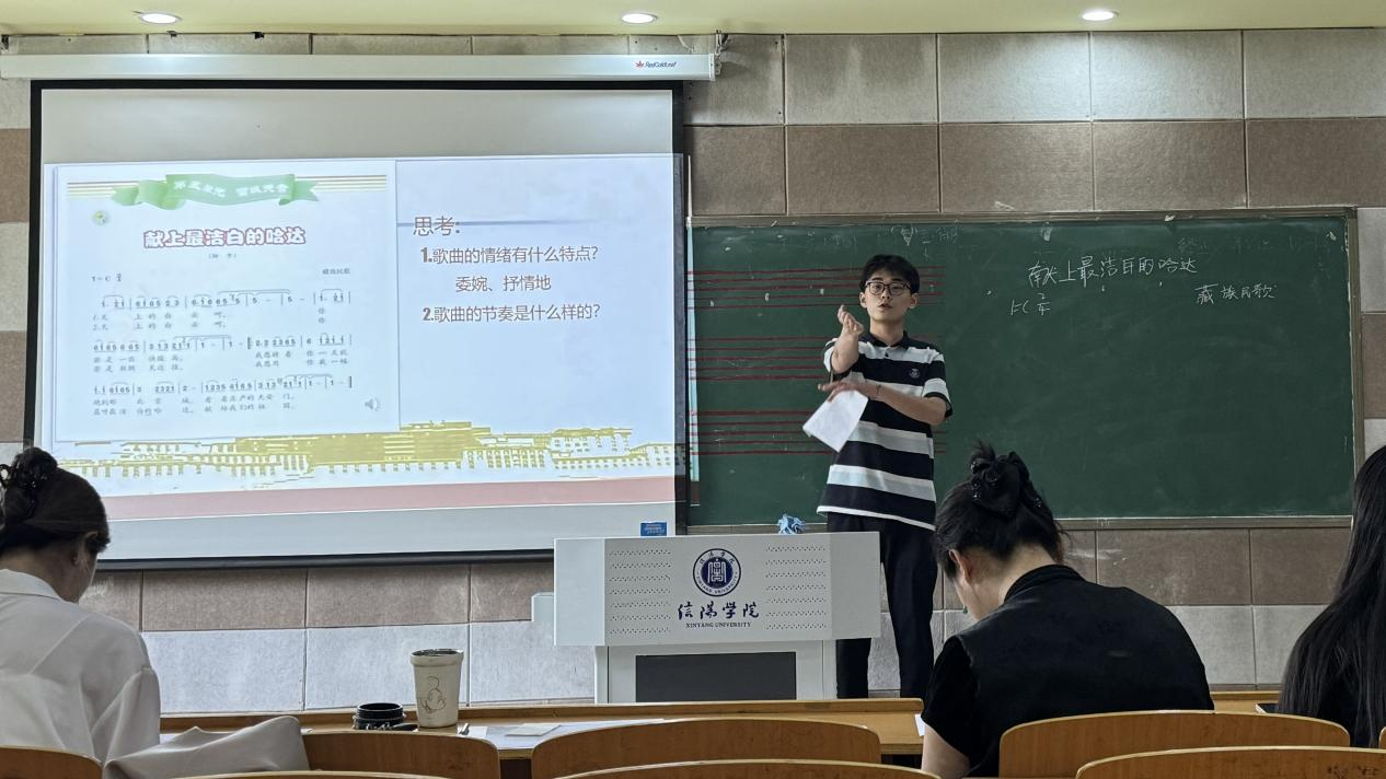 为进一步促进师范生专业技能提升,按照学校统一安排,5月20日,音乐学院在艺术楼202教室举办了Beat365唯一官方网站2025届师范生教学技能大赛初赛。共有10名选手参赛,历届创新大赛获奖教师担任了比赛评委。