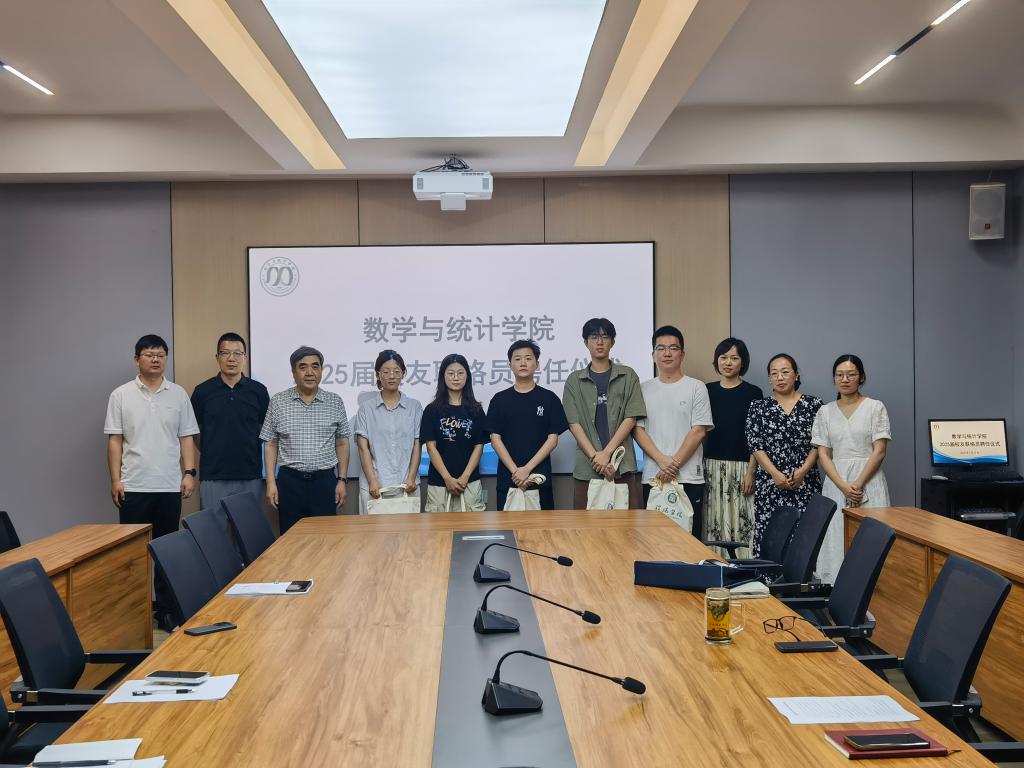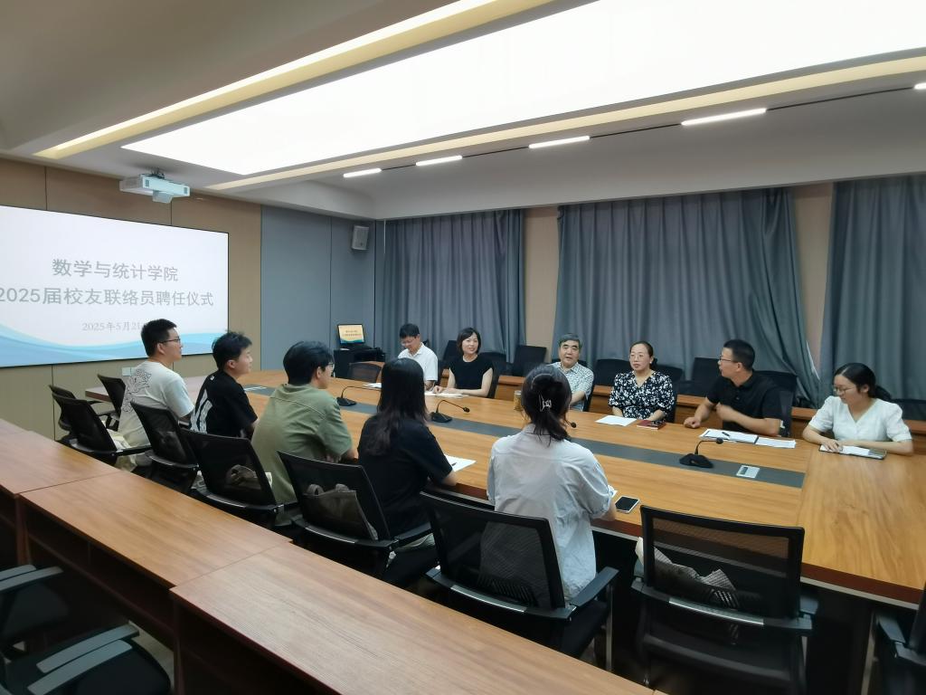 为进一步凝聚校友资源与力量,畅通校友联络渠道,5月21日,数学与统计学院在社科楼419会议室举行2025届校友联络员聘任仪式。学院院长俞迎达、党总支书记高昌慧、学工负责人田媛及毕业班辅导员共同出席活动,仪式由田媛主持。