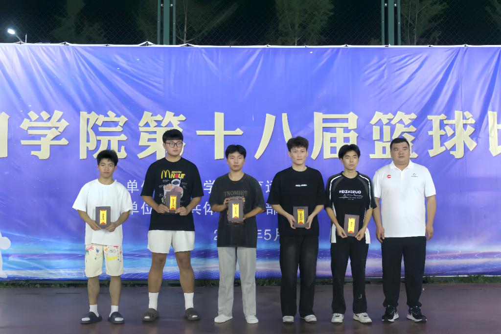 学生组比赛中,我院学子敢打敢拼,尽显青春活力。队员们在快攻突破与联防协防中展现出扎实的训练功底,面对强手时始终保持永不言弃的斗志,最终获得学生团体男子组第七名的良好成绩,其中闫锦同学荣获“最佳新秀”称号。