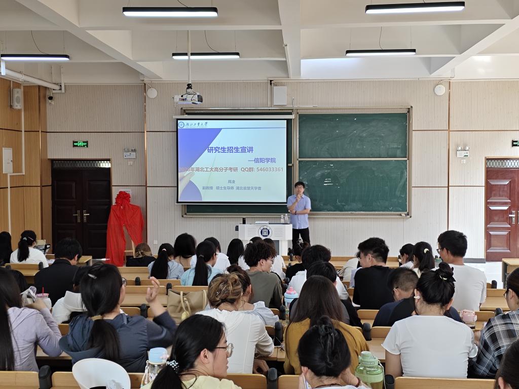 为帮助化学专业考研学子精准把握考研动态,提升备考效率,应理工学院邀请,5月21日下午,湖北工业大学材料与化学工程学院在实训中心104室开展26届、27届化学专业学生考研宣讲活动。湖北工业大学材料与化学工程学院周凌、张谦两位博士,理工学院副院长李晓严、化学教研室全体教师及理工学院22级、23级全体学生参加宣讲会。考研明星指导教师李文轩主持了本次宣讲会。