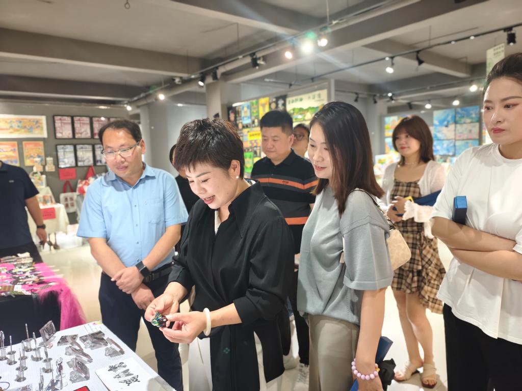马莉一行参观了学院2025届毕业生优秀作品展,对展出作品给与了高度认可,纷纷为学生的创作点赞,不时与负责老师进行专业设计方面的交流互动。