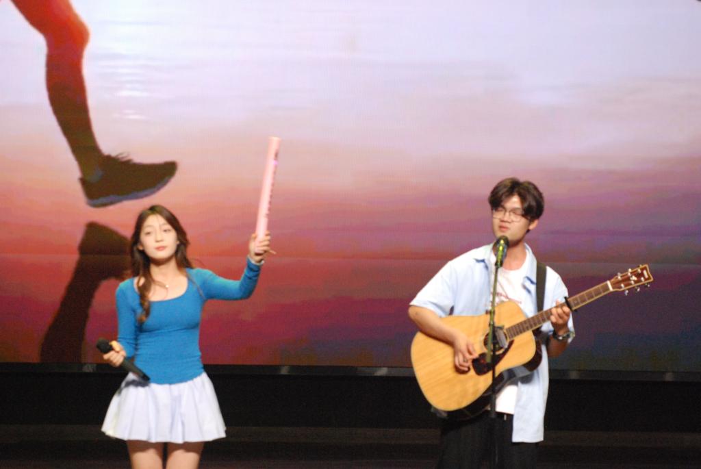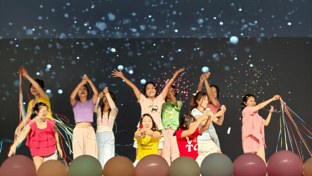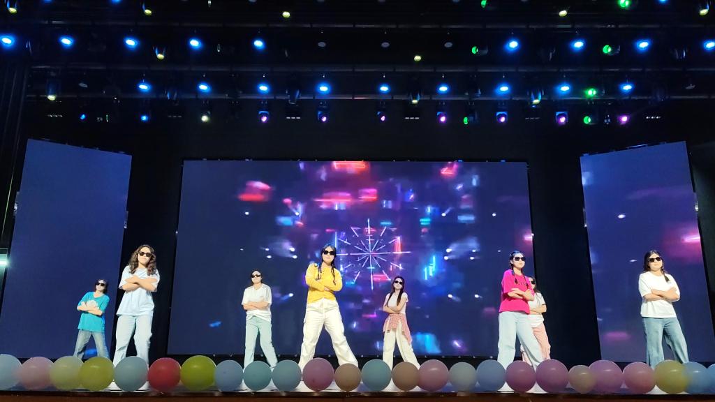 “心语·共话成长”篇章中,舞蹈《Perfect Night》与《Because Of You》以灵动的舞步,生动演绎了青春的无限活力与澎湃激情,歌曲串烧《花开忘忧》《舍得》及《同桌的你》宛如一曲曲青春的旋律,细腻诉说着过往的故事与成长的深刻感悟,舞蹈《大鱼》优美空灵,吉他弹唱《奔跑》充满力量,每一个节目都彰显着青春的独特韵味。