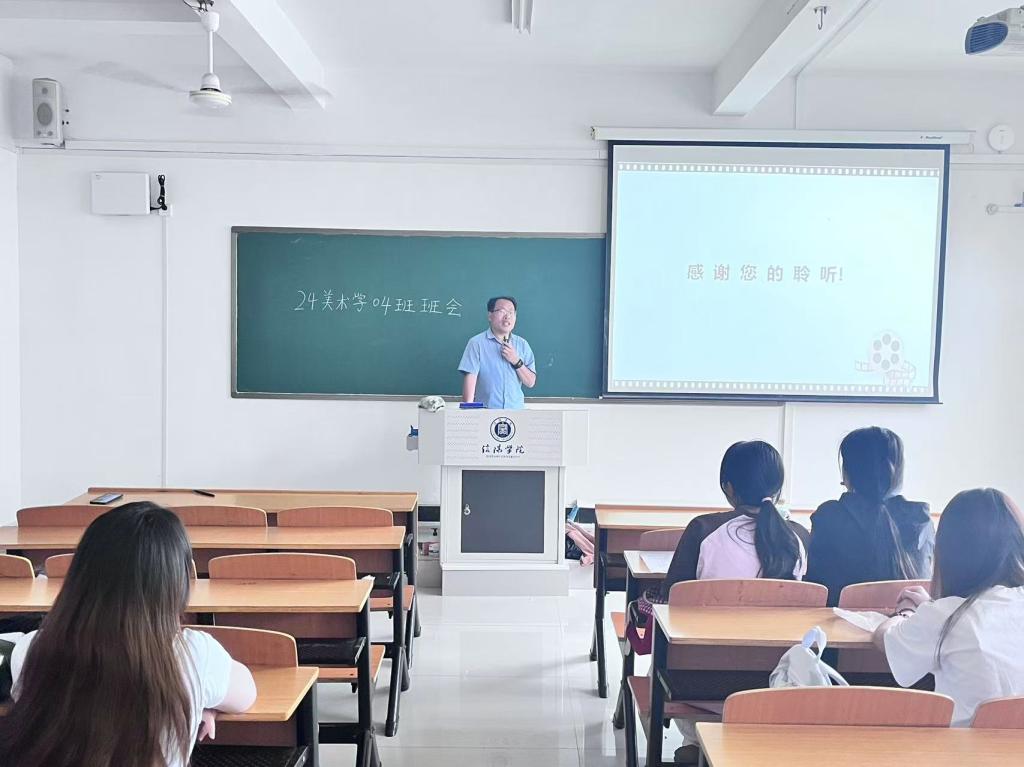 为加强大学生思想政治教育,引导学生坚定理想信念,勇担时代使命,做新时代的追梦人,5月23日下午,美术与设计学院党总支书记郑山峰在人文楼318教室为24级美术学4班学生,讲授了《立青春鸿鹄志,做奋斗追梦人》专题思政课。