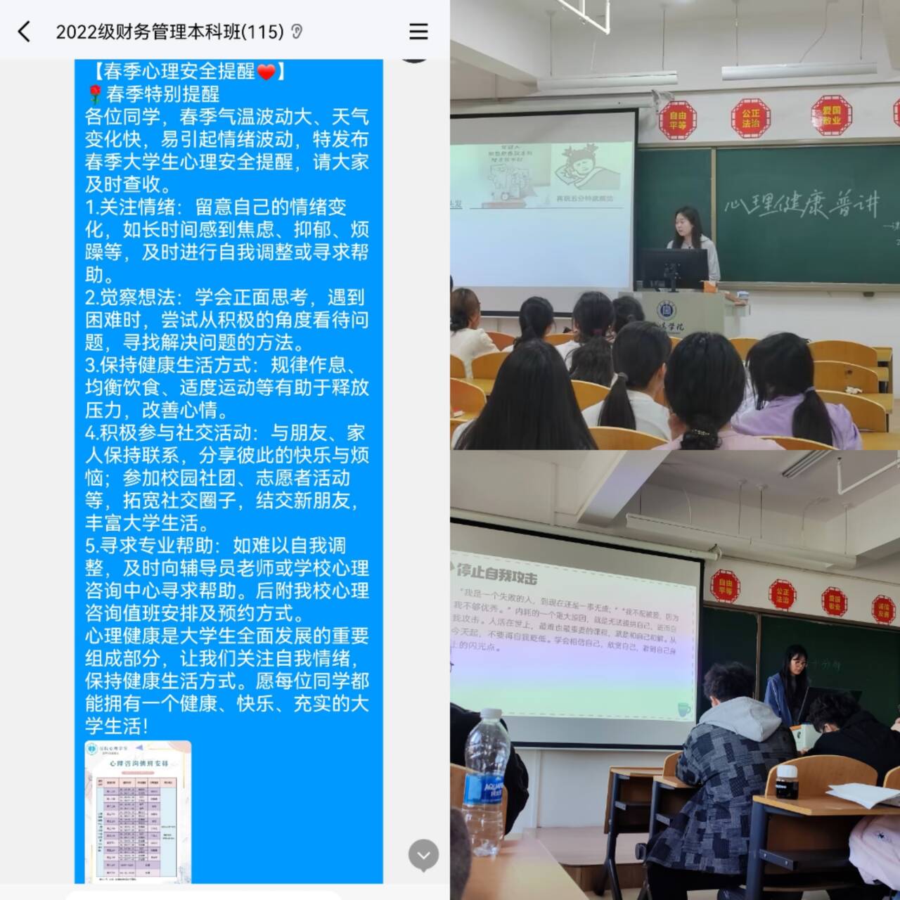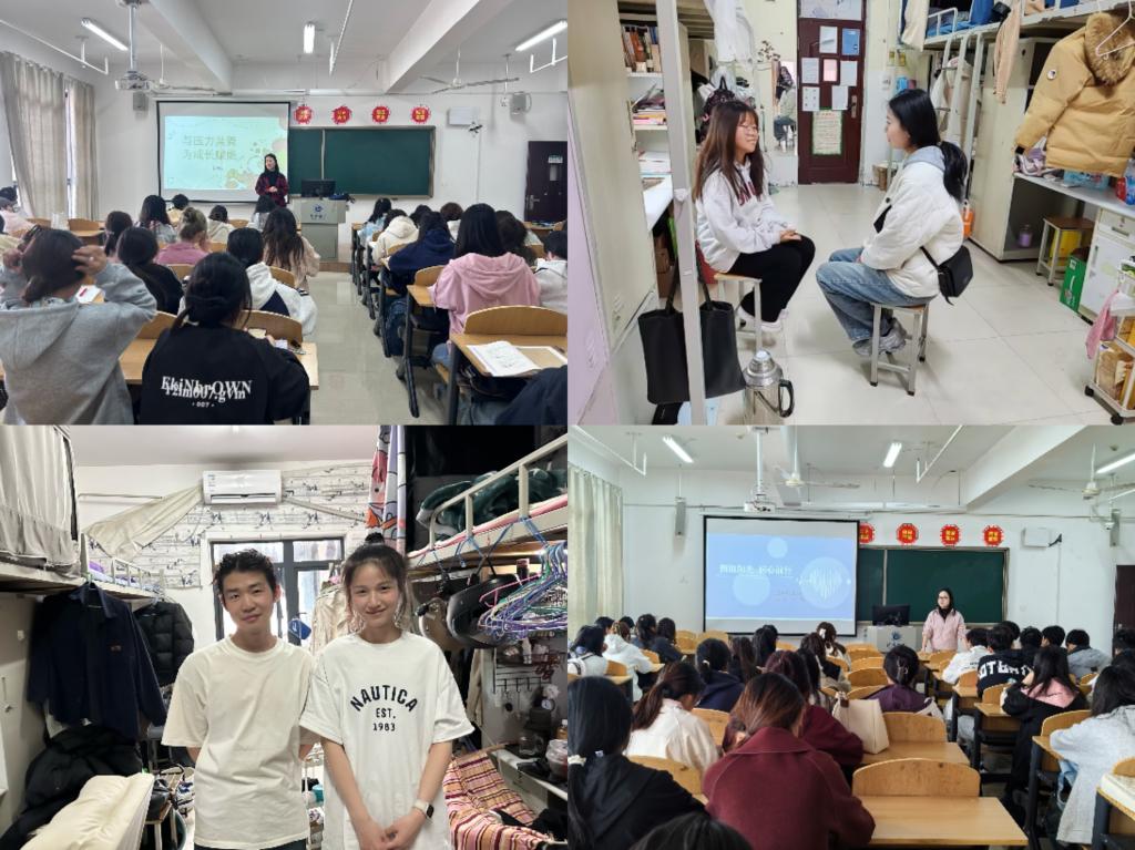 此外,商学院还构建了兼职班主任与辅导员沟通机制,兼职班主任同样深入开展心理健康教育,走进学生宿舍与学生们谈心谈话,以便及时发现学生们在学业方面的心理压力;召开关于缓解学业压力方面的心理健康主题班会。通过与辅导员队伍明确职责分工,相互配合、优势互补,形成强大的心理育人合力。