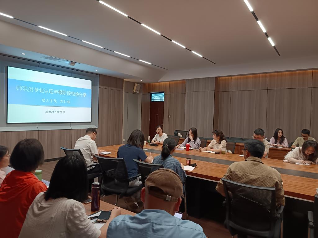为推进心理学专业在师范类专业认证申报阶段的工作,明确该阶段的工作思路和具体任务,加强申报团队成员关于专业认证的知识学习,5月27日下午,教育学院联合文学院、音乐学院,共同邀请理工学院刘仁植副教授在社科楼109会议室开展师范类专业认证培训会。培训会由教育学院副院长段海丹主持,文学院副院长黄亚妮、音乐学院副院长杨辉、三个学院骨干教师代表及教学管理人员参加了会议。