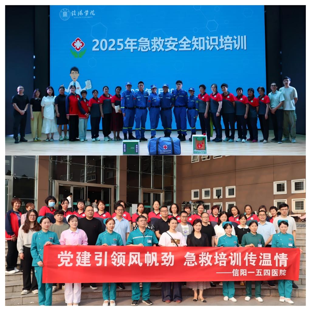 下午的培训由信阳市154医院纪委书记万书记带队,急诊外科、急救科、麻醉科医护人员组成专业团队,系统讲解了心肺复苏(CPR)、自动体外除颤器(AED)使用、海姆立克急救法及常见创伤处理方法。在专业指导下,参训人员从伤情判断到实施急救进行了全流程操作练习。特别是在AED使用环节,专家们逐一指导参训人员正确操作设备,确保参训者能正确掌握急救流程和技术要点。