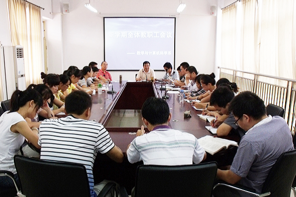 8月29日上午,数学与计算机科学系在教二楼510会议室召开新学期全体教职工会议,会议由学工秘书余兴旺主持。