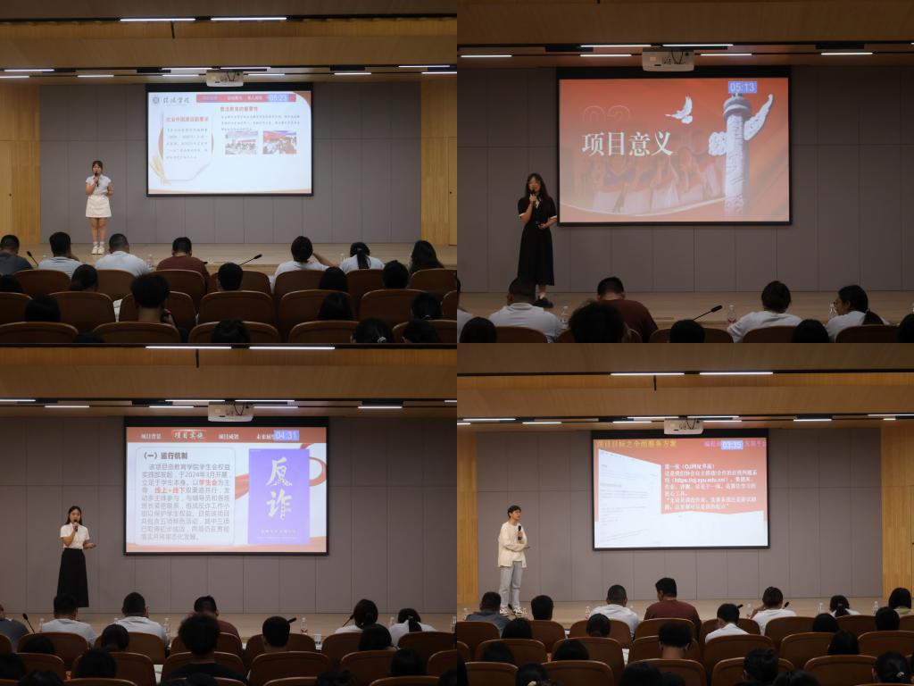 决赛分两阶段进行。首阶段,“我为同学做实事”项目团队通过6分钟PPT展示及2分钟答辩,阐述项目策划、实施与成效。评委从可行性、创新性、服务实效等维度提问点评,为项目优化指明方向。