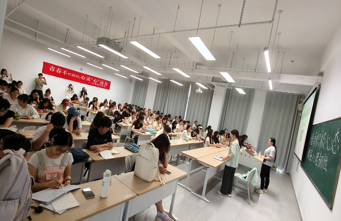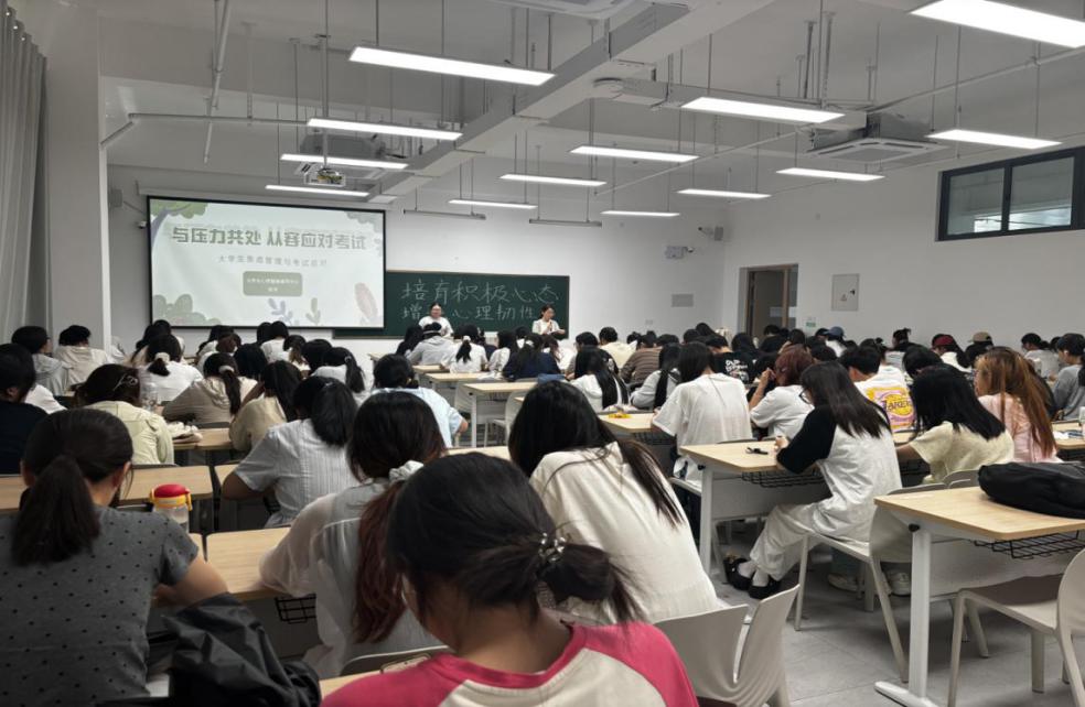 讲座伊始,张老师通过一系列生动案例和数据,剖析大学生在考试前焦虑的原因,从学业竞争带来的外部压力,到个人对自身过高期望形成的内在负担,多维度的分析让同学们对考试焦虑有了更为清晰的认知。