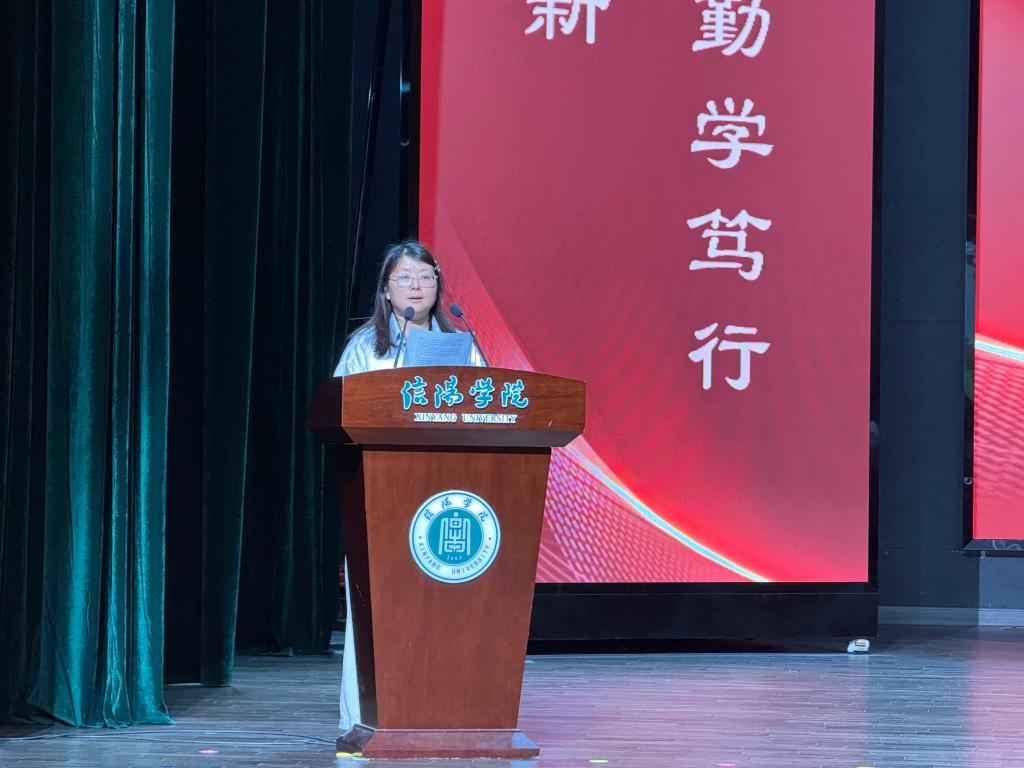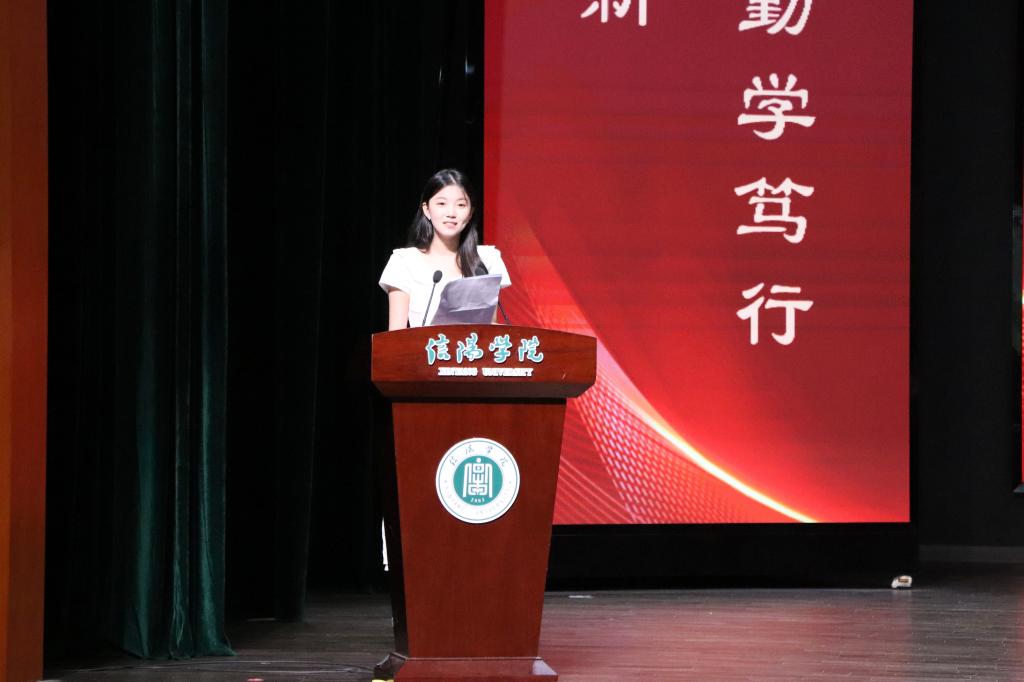 教师代表李夏菲老师鼓励毕业生们向上攀登、向新发力,践行“锐意进取、追求卓越”的信院精神。希望每位学生都能够不忘初心,坚守理想,在教育的舞台上绽放光芒,为教育事业贡献自己的力量。