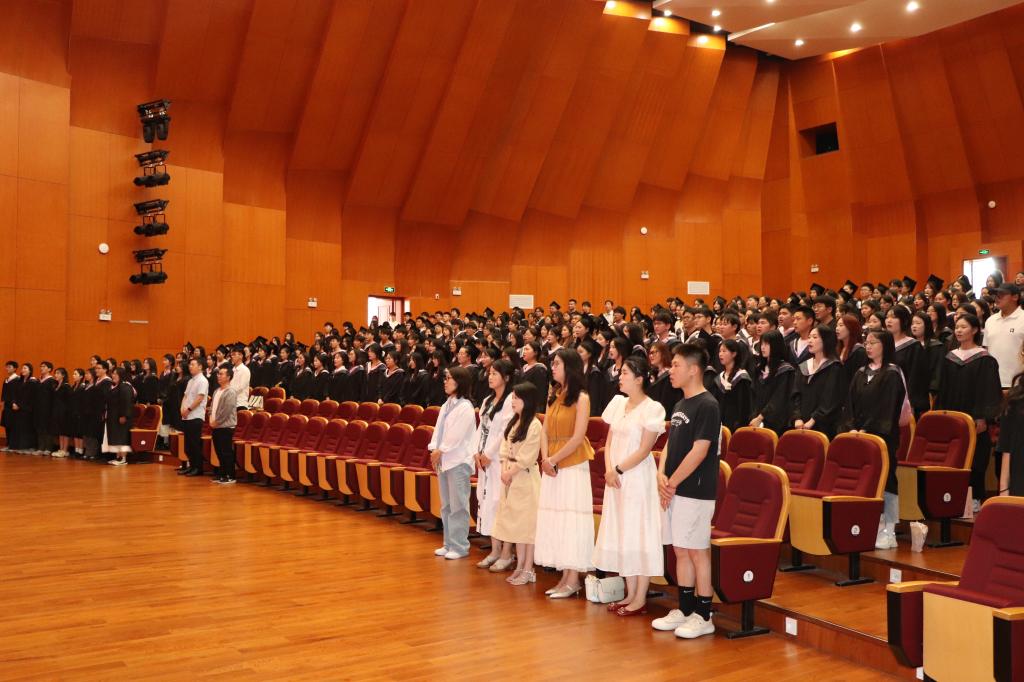 毕业典礼在庄严的国歌声中拉开帷幕。刘颖方宣读了《关于表彰2025届优秀毕业生的决定》《关于表彰2025年考研先进个人的决定》和《关于聘任2025届校友联络员的决定》。教育学院学位评定分委员会副主席段海丹宣读了《关于授予刘心茹等722名本科毕业生学士学位的决定》。
