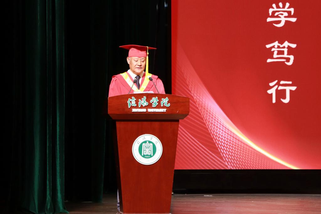 副校长王强发表讲话。首先代表学校向圆满完成学业的同学们表示最热烈的祝贺,向每一位付出辛勤汗水的老师致以最崇高的敬意,向一直以来关心和支持的家长朋友表示最诚挚的感谢。回顾过去的四年,教育学院见证了同学们的成长,教育学院也不断取得新的成绩。并向即将告别熟悉的校园,踏上新的征程的毕业生寄予期望。一、胸怀格局,翱翔人生苍穹。希望同学们能时刻保持一份包容的心态,多一些欣赏;少一些抱怨,多一些从容,少一些焦虑。希望同学们在任何的工作岗位上都能够化平凡为不凡。二、以心为笔,书写向上人生。作为一名教育工作者,要用爱心温暖学生的心灵,让他们在成长道路上感受到关心与支持。三、终身学习,做时代的追光者。毕业并不是学习的终点,而是一个新的起点。要保持终身学习的心态,不断更新自己的知识结构,提高自己的专业素养。祝愿同学们在人生的道路上一帆风顺,前程似锦!