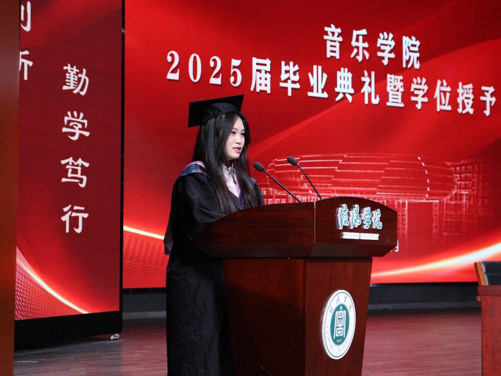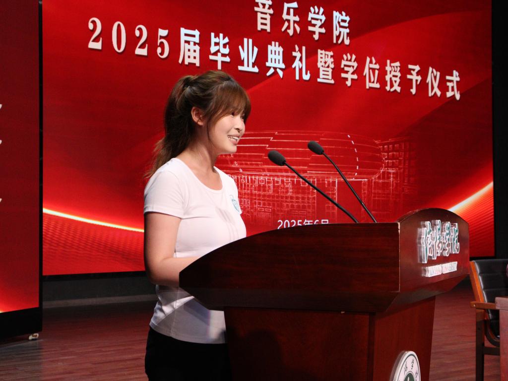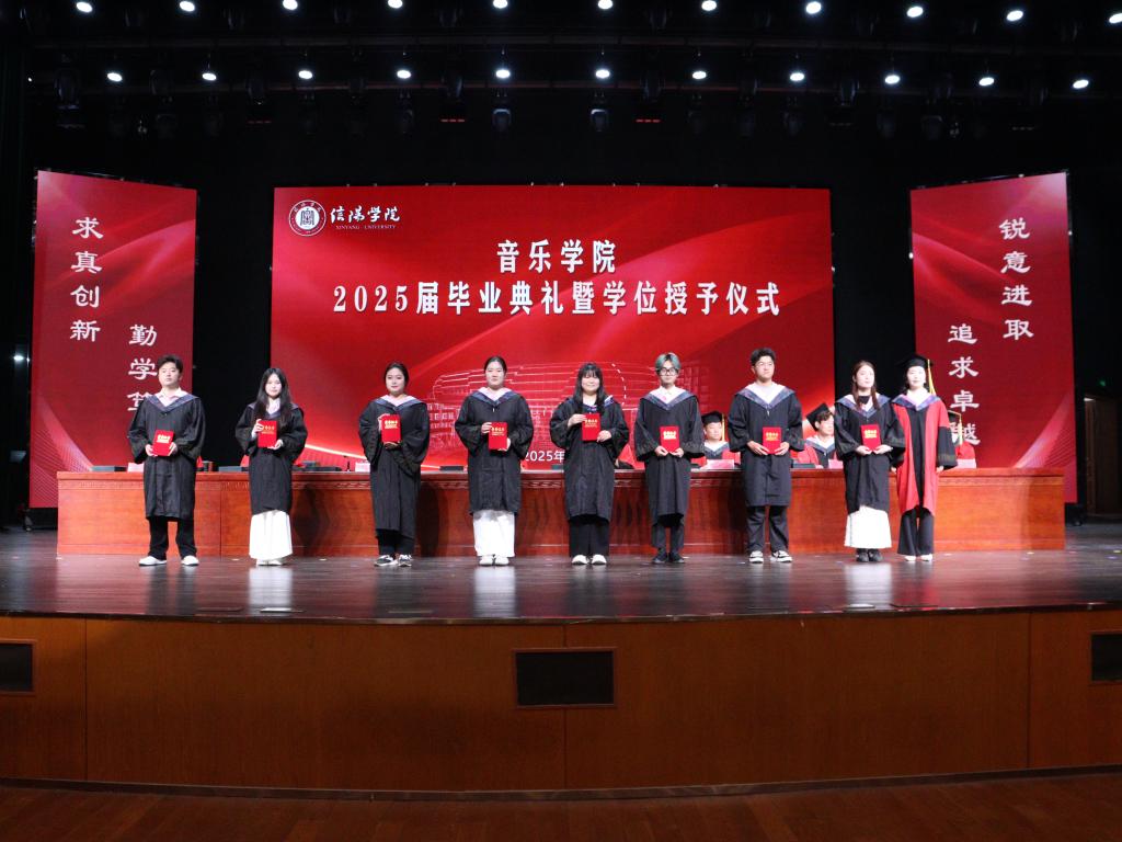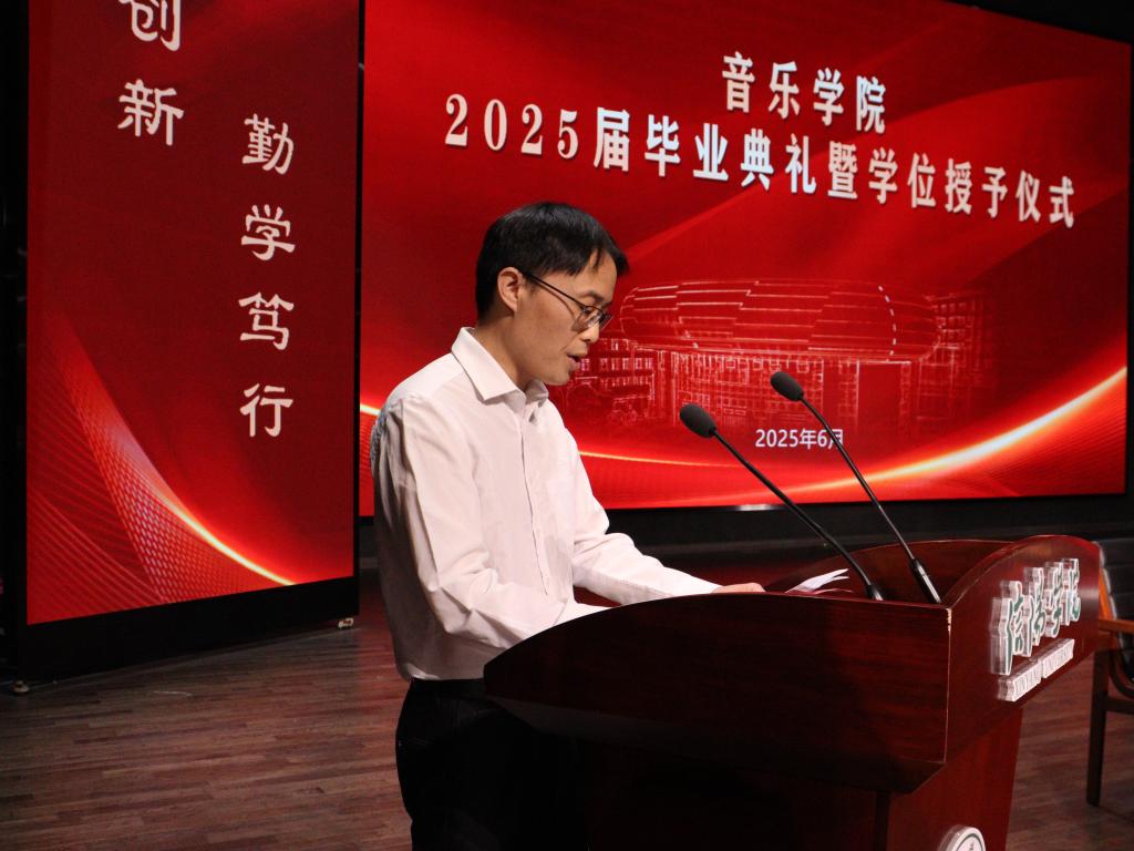 郝昊宣读了《关于表彰音乐学院2025届优秀毕业生的决定》。杨辉宣读了《关于授予2025届本科毕业生学士学位的决定》,并为优秀毕业生颁发荣誉证书。