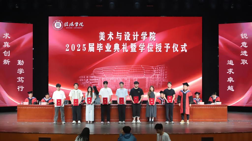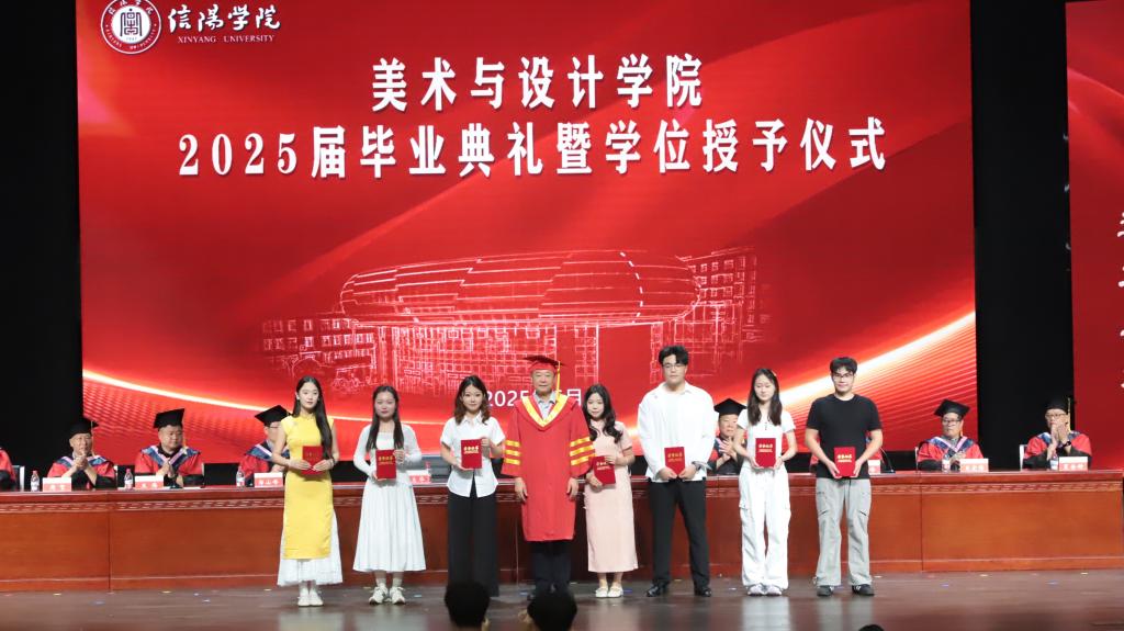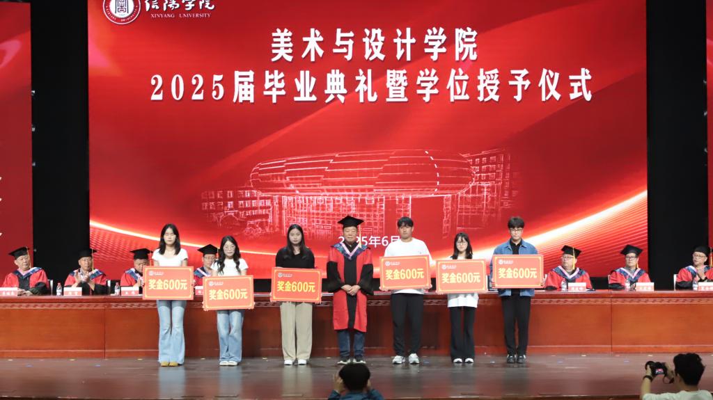 教学副院长王伟宣读了《关于表彰2025年优秀应届毕业生的决定》《关于表彰2025届毕业创作/设计作品的决定》《关于表彰信阳市“第五届文化创意设计大赛”获奖师生的决定》。王委迪等11名同学被评为“河南省2025年优秀毕业生”、杨雨鑫等77名同学被评为“Beat365唯一官方网站2025年优秀毕业生”;美术学专业袁晓等55名学生的毕业创作被评为美术与设计学院2025届优秀毕业作品;徐文君等20名师生荣获信阳市“第五届文化创意设计大赛”一、二、三等奖和优秀指导教师奖。
