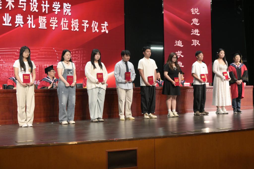 王志华向2025届毕业生圆满完成学业表示祝贺。他指出,同学们求学的四年,也是见证学校新校区建设和内涵发展提质增效的四年,广大学生既是美术与设计学院一系列重大发展成就的经历者,也是参与者。他希望毕业生们要牢记习近平总书记殷殷嘱托,把个人艺术追求与满足人民文化需求相结合,让艺术创作扎根人民生活,服务社会发展,做新时代“艺术为民”的践行者;要用创新思维打破陈规,在传承中寻求突破,在融合中实现超越,做文化创新的生力军;要不断学习,善于总结,磨炼成长,做终身学习的艺术工作者。他希望毕业生们勇于面对挑战,敢担社会责任,用实际行动彰显新时代青年的精神风貌,让青春在奋斗中绽放绚丽之花。祝愿全体毕业生前程似锦,鹏程万里!