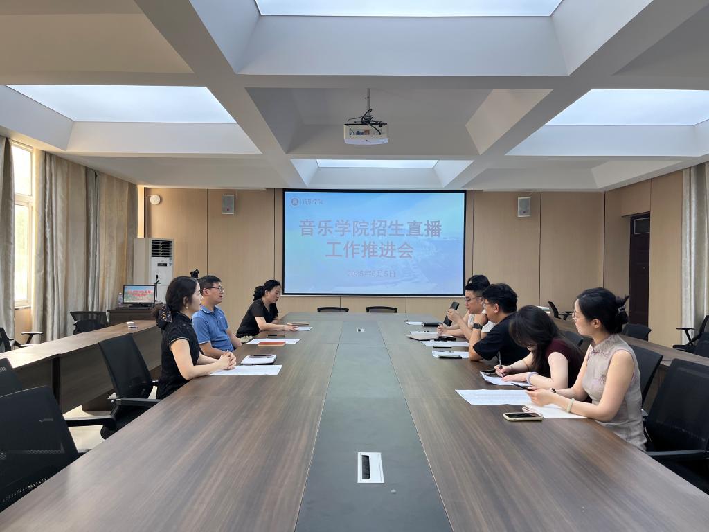 2025年高考在即,为进一步落实学校招生直播有关工作要求,全面做好2025年招生宣传工作任务,6月5日,音乐学院在艺术楼215会议室召开2025年招生直播工作推进会。党总支书记郝昊、副院长杨辉及班子成员、各教研室主任及招生直播有关负责教师参加了会议。杨辉主持了会议。
