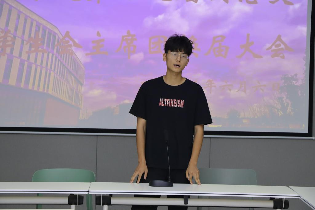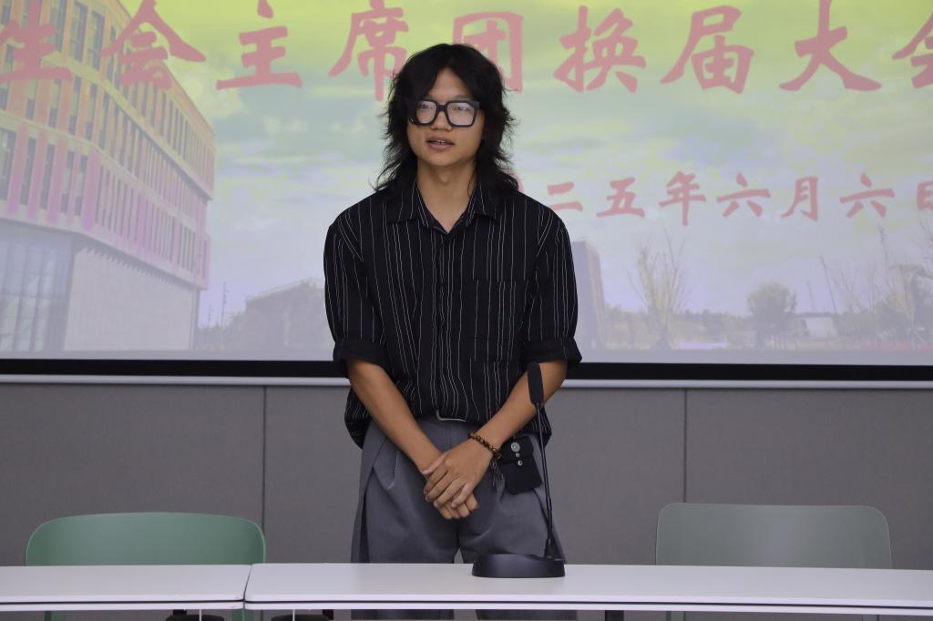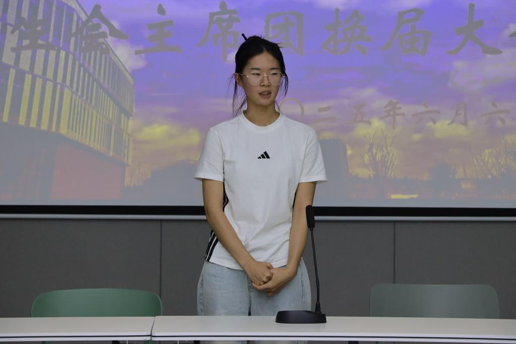 学生会主席团候选人依次进行竞选演讲。他们围绕个人履历、实践经验、工作构想等方面,向现场评审老师及十八届团总支学生会主席团全面展示自身优势与履职能力。每一位候选人演讲结束后,评审团成员针对候选人的陈述内容进行深度提问,并从工作规划等方面提出专业建议,助力候选人完善未来工作思路。
