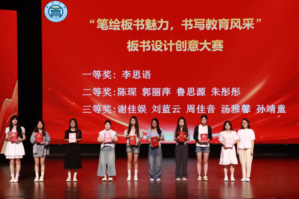 晚会以“匠心育才筑梦行,知行合一创未来”为主题,巧妙融合节目展演与颁奖环节,涵盖了歌曲、舞蹈、情景剧等多种类型,精彩纷呈。活力四射的舞蹈拉开序幕,瞬间点燃现场热情;别开生面的“教具展示走秀”成为智慧与创意的舞台,各班级代表将日常教具转化为艺术表达,展现出教育设计的独特魅力,令现场观众赞叹不已。在颁奖典礼环节,教育学院教师教育教研室主任闫楷汶、教育学教研室主任冯海燕、学工干事胡超、教学干事刘勋达、行政干事白鹭依次为三字笔、模拟课堂短视频创作和板书设计大赛的获奖者齐铭欣、刘欣怡、李颖等四十人颁发荣誉证书,共享荣誉时刻。