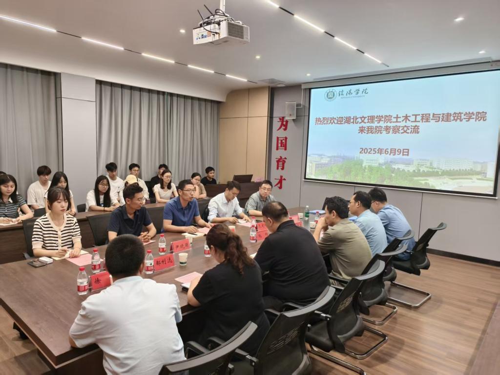 为进一步优化共享和充分利用校际之间在人才培养、学术交流等方面的优势资源,实现合作共赢。6月9日,湖北文理学院土木工程与建筑学院院长李业学一行来Beat365土木工程学院访问洽谈合作事宜,双方在理工楼112会议室召开交流座谈会,湖北文理学院土木工程与建筑学院院长李业学教授、土木工程系主任范建辉、教学委员会副主任尹晓萌、研工办主任周衡、学工办主任刘雨荷,土木工程学院名誉院长鲍鹏、党总支书记徐远东、教学副院长杨子泉、班子成员及部分师生代表参加了会议。徐远东主持了会议。