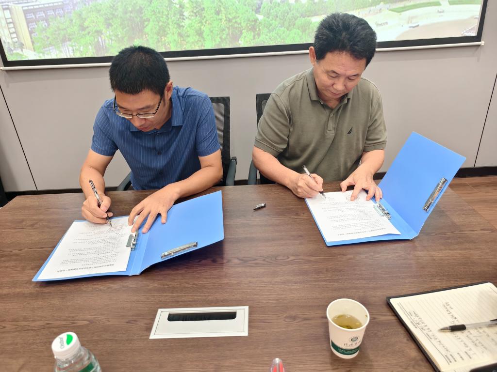 与会人员就学院的未来发展和研究生联合培养等问题进行了深入交流。随后,鲍鹏院长与李业学院长签订了研究生联合培养合作协议,并为“研究生联合培养基地”揭牌。这标志着两校在人才培养、学科建设等方面达成深度合作,未来将通过联合培养等方式,助力信院学子提升考研竞争力,为行业输送更多兼具理论深度与实践能力的复合型人才。