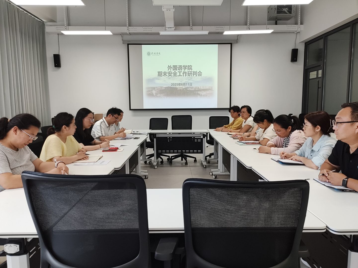 为切实保障学生身心健康与生命安全,营造安全稳定的期末学习生活环境,6月11日,外国语学院召开期末安全工作研判会,对期末阶段学生安全相关工作进行全面分析与部署,外国语学院党总支副书记程娇炎出席会议,学工干事何珊珊及全体辅导员参加会议。